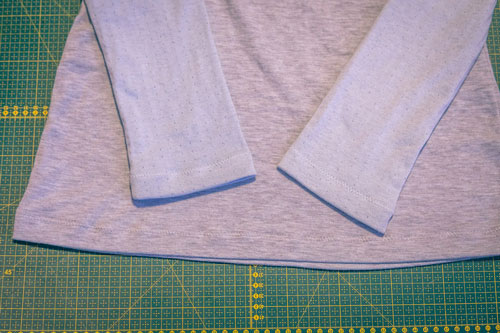 Danach kann das fast fertige Shirt schon auf rechts gewendet werden und wir nähern uns dem Endspurt. Es müssen nur noch Saum, Ärmel und Halsausschnitt gesäumt werden.