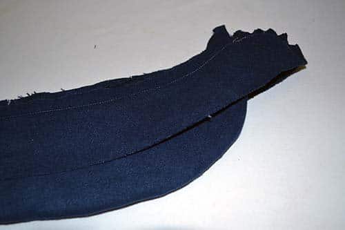 - Nun ist der Saum des Capes an der Reihe. Hierzu werden die Belege rechts auf rechts aneinander genäht. Nun hast du den kompletten Saumbeleg in einem geschlossen Kreis gefertigt. Bei Ware, die sich nicht auflöst (wie zum Beispiel Kunstleder), kann auch der Saum offen gelassen werden, wenn es optisch gewünscht ist.