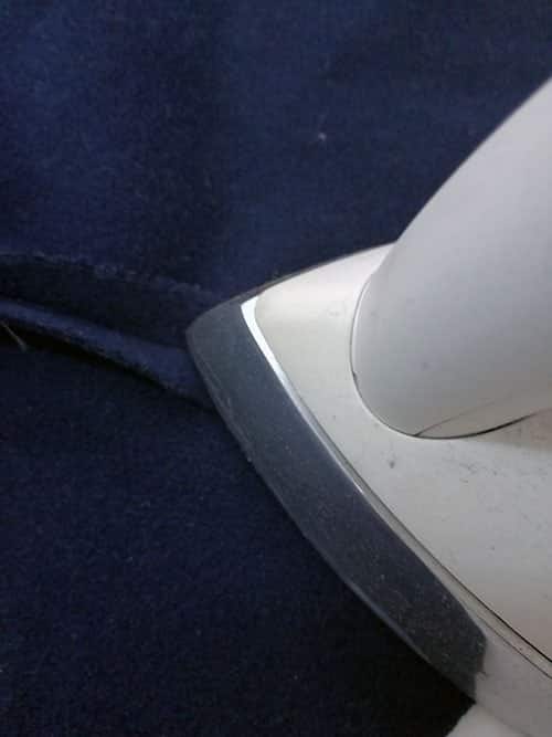 - Belege, Krägen und Leisten werden mit dem Bügeleisen fixiert. Achte darauf, dass das Bügeleisen nicht zu heiß ist und verwende keinen Dampf dabei.