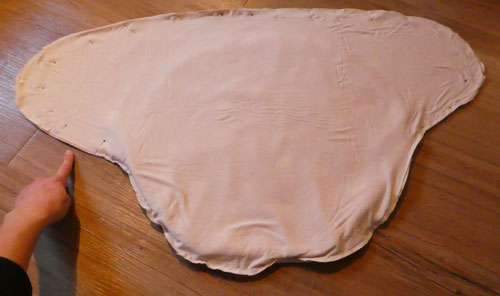Entfernt nun die Stecknadeln. Das Hinterteil ist jetzt fertig zugeschnitten.