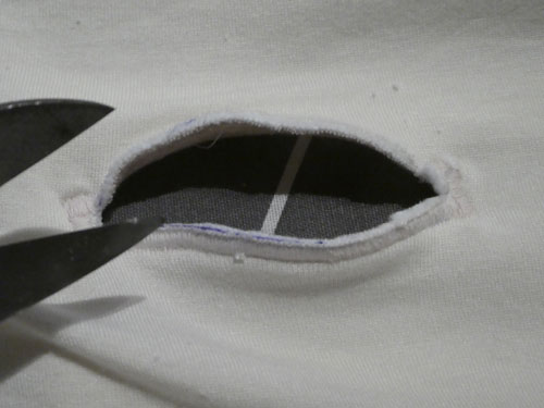 Schneidet nun den inneren Bereich knapp aus. Achtet darauf, dass ihr nicht in die Zickzack-Naht schneidet.