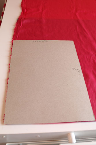 Je einmal Außenstoff und einmal Innenstoff in DIN A4-Größe zuschneiden. Ihr könnt die Größe natürlich eurem Smartphone anpassen.