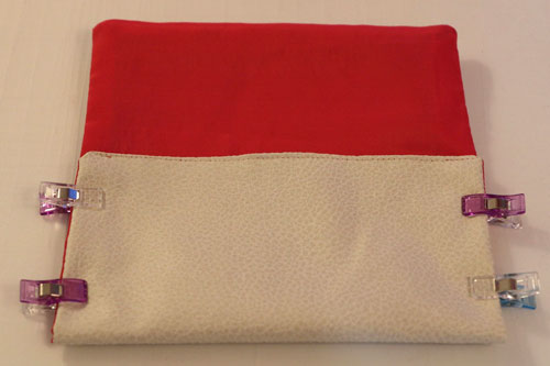 Die Tasche wird jetzt unten zu etwa einem Drittel umgeschlagen (prüft gerne, ob das für euer Handy dann so passt) und die Seitennähte knappkantig mit dem Geradstich zusamengenäht.