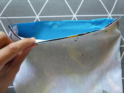 Jetzt könnt ihr den Stoff wenden, sodass die beiden schönen Seiten der Stoffe zu euch zeigen.