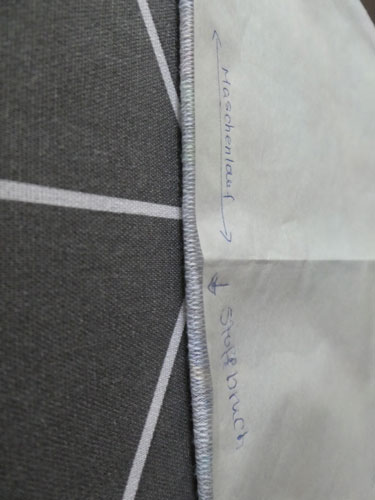 An der linken Seite entsteht nun der Stoffbruch und der Stoff liegt fadengerade aufeinander.