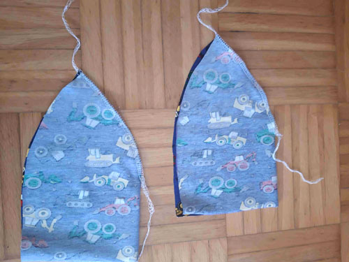 Nun wird bei beiden Schnittteilen einfach die Mittelnaht geschlossen.
