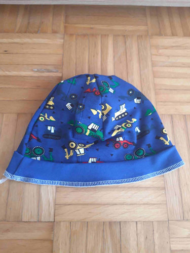 Diese Mütze hat einen Kopfumfang von 52 cm und passt einem ca. 3 jährigen Kind.