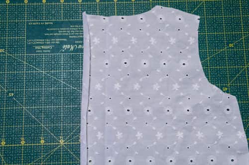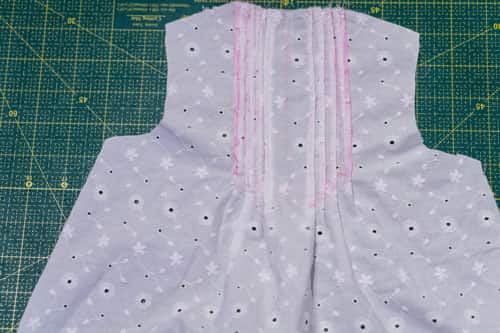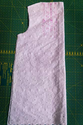 Zuerst werden die Schulternähte geschlossen. Dafür werden die beiden Vorderteile rechts auf rechts auf das Rückenteil gesteckt und an den Schulternähten zusammengenäht.
