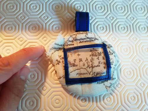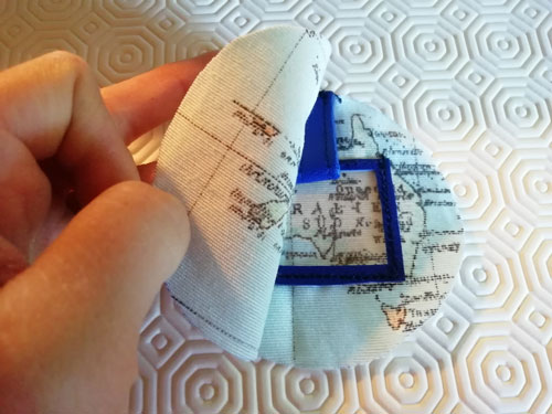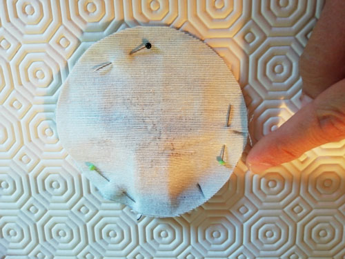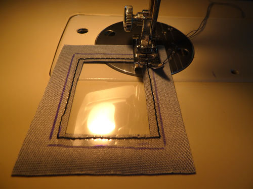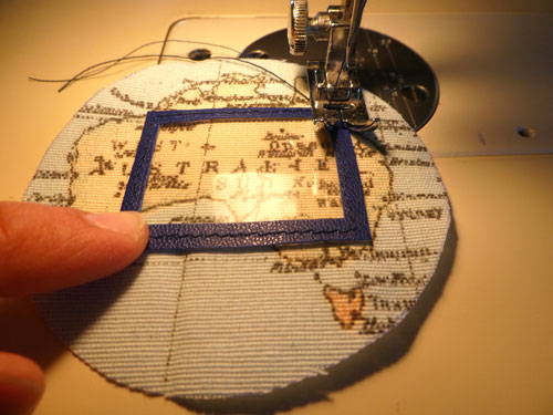 Nun legt ihr euer "Fenster" auf den gewünschten Kreis und näht es mit einem geraden Stich fest.