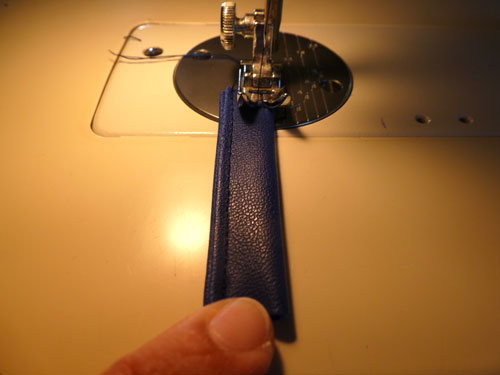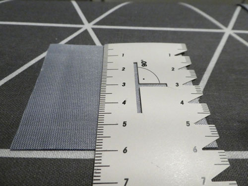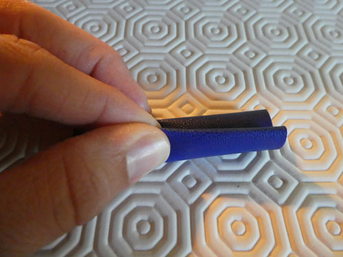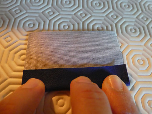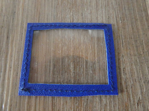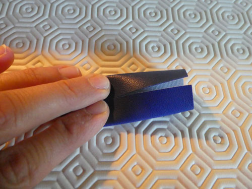 Außerdem benötigt ihr zudem ein Rechteck aus dem blauen Kunstleder mit den Maßen 6 cm x 7 cm.