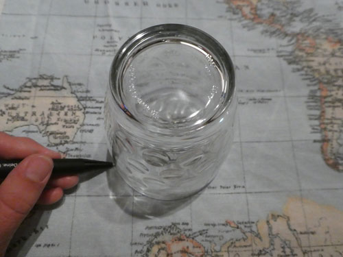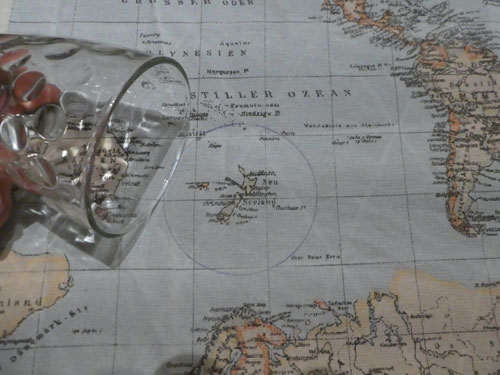 Anschließend stellt ihr das Glas bzw. die Tasse mittig über das abgebildete Land und fahrt einmal mit dem Kugelschreiber ringsherum.