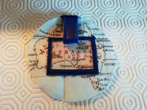 Legt dann den zweiten Kreis rechts auf rechts (schöne Seite auf schöne Seite) auf den ersten Kreis. Achtet darauf, dass die beiden "Länder" richtig herum liegen und die zuvor genähte Schlaufe im Inneren der beiden Kreise liegt.