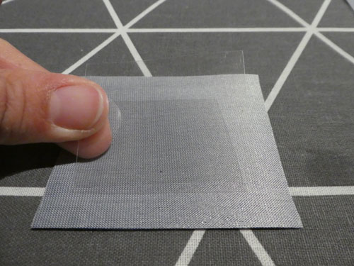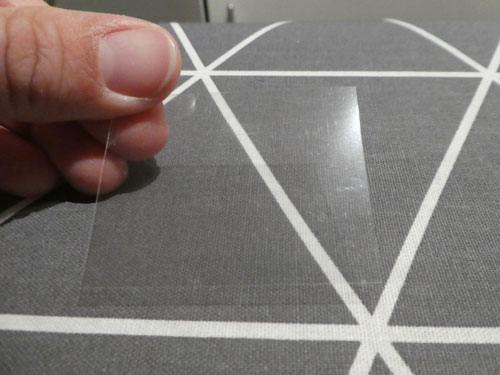Anschließend schneidet ihr euch ein Rechteck aus der laminierten Laminierfolie mit den Maßen 4 cm x 5 cm zu.