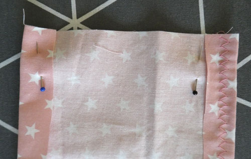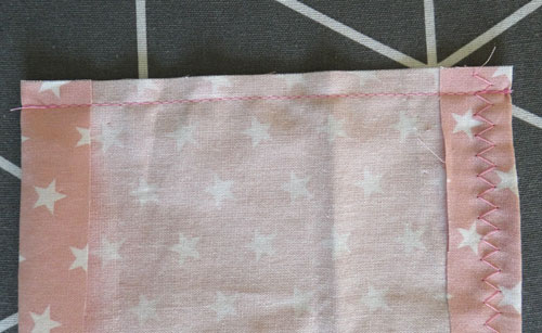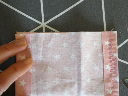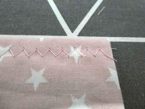 Näht diese Kante mit einem Zickzackstich einmal ab.