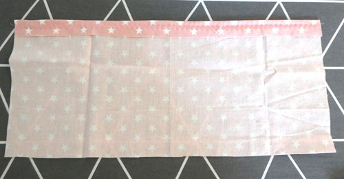 - Baumwollstoff, ca. 34cm x 17cm (für Kinder 34cmx 11cm) z. B. Baumwollstoff Léger - Small Stars - Rosa/Weiß
