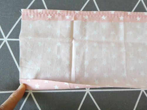 Ihr habt nun eine Art "Schlauch", der oben und unten geöffnet ist. Oben besitzt er eine Zickzacknaht und unten einen eingeklappten Saum.