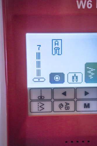 Eigentlich reicht bei Webware ein einfacher Geradstich. Da das Nashorn aber durch spielende Kinder ziemlich stark beansprucht wird, habe ich mich hier für einen dreifachen Geradstich entschieden. Dieser ist elastisch und einfach stabiler. Es wäre doch sehr ärgerlich, wenn später die Nähte aufplatzen. Auf meiner Maschine wird er so dargestellt, je nach Maschine kann das Symbol allerdings leicht variieren:
