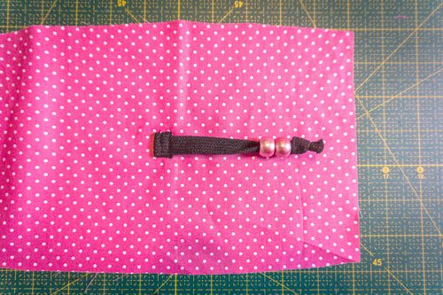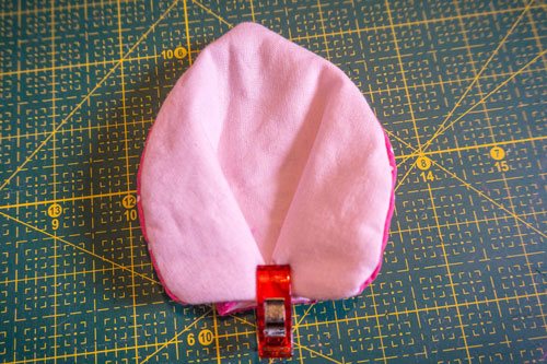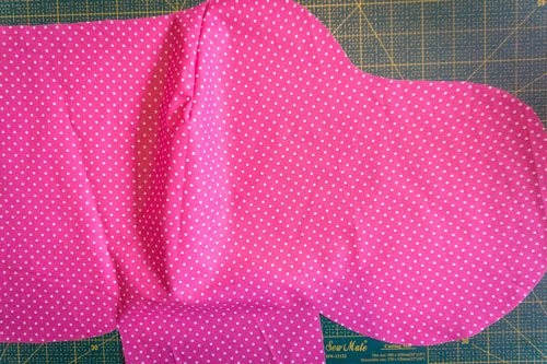 Danach faltet ihr noch die Außenseiten zur mittleren Markierung hin und steppt diese Falte knappkantig fest. Dadurch erhalten die Ohren ihre typische Form.