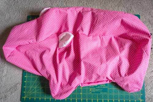 Nun wird es spannend! Wendet euer Nashorn auf rechts und kontrolliert noch einmal, ob alle Nähte sauber geschlossen sind und sich nirgends Schwachstellen zeigen. Wenn irgendwo noch nachgebessert werden müsste, ist dies jetzt noch problemlos möglich.