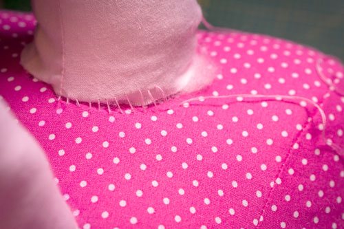 Legt sie nun auf die dafür vorgesehenen Markierungen auf Schnittteil 2 und näht sie mit einem Geradstich fest. Sie stehen jetzt noch nicht richtig, den Feinschliff machen wir ganz zum Schluss von Hand.
