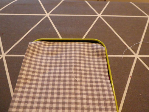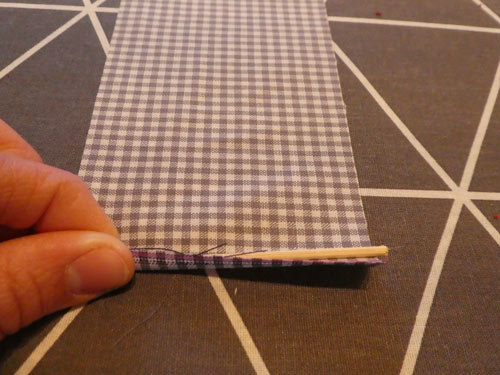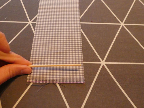 Wickelt den Anfang des Stoffs 2-3 Mal um einen Schaschlik-Spieß.