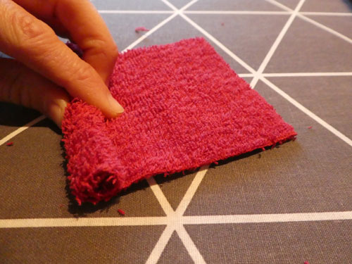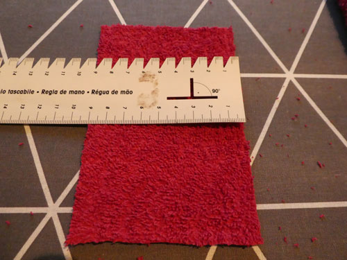 Als erstes messt ihr eure Dose aus und schneidet dann aus dem Handtuch gleich große Stücke zu, die so breit sind wie die Blechdose und je nach Dicke des alten Handtuchs ca. 15-20 cm lang.