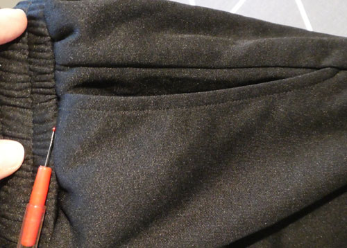 Öffne mit Hilfe des Auftrenners die beiden Nähte ganz oben am Bund und unten, an der Stelle wo die Tasche in die Seitennaht läuft. Du musst die Naht nicht komplett auf machen. Ca. 6 cm reichen aus.