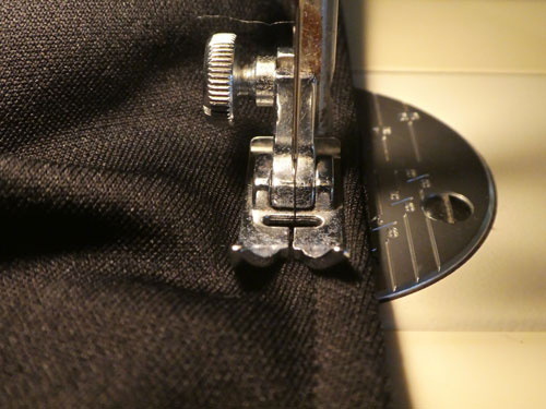 Steppe das gesteckte Stück einmal knapp ab. Achte darauf, dass trotzdem noch genug Platz für den Zipper ist und du den Reißverschluss nach dem Nähen trotzdem noch schließen kannst.