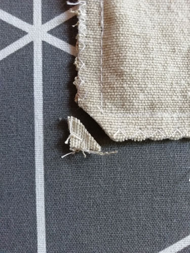 Schneidet dann alle vier Ecken knapp an der Naht ab. Mit dem Zurückschneiden der Ecken entstehen beim Wenden schönere Ecken und es gibt weniger Gewurstel.