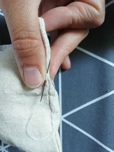 Wenn das Kissen mit Watte gefüllt ist, schließt ihr die Wendeöffnung von Hand mit einem Matratzenstich.