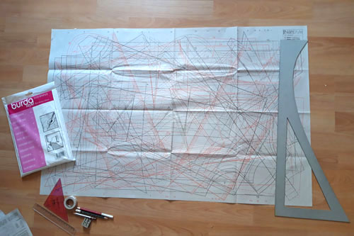 - Schneiderkreide oder Zauberstift, Lineal/Schneiderwinkel, Papier- und Stoffschere, Bleistift, Spitzer, etc.