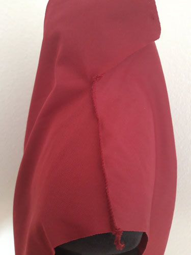 Die entstandene Öffnung wird dann zwischen Schulter und Kragen gesteckt und genäht.