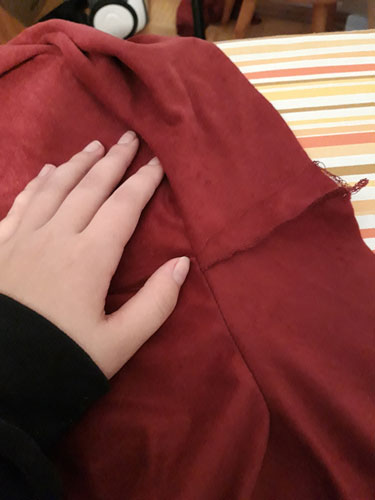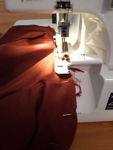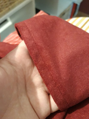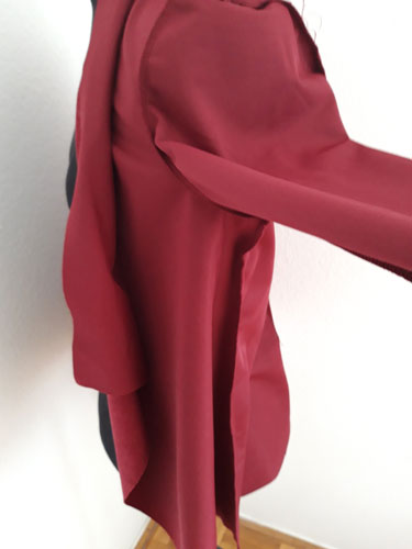 Da dieser Stoff nicht ausfranst, müssen die Ränder nicht eingefasst werden. Bei Stoffen, die zum Ausfransen neigen, empfiehlt sich eine Einfassung jedoch.