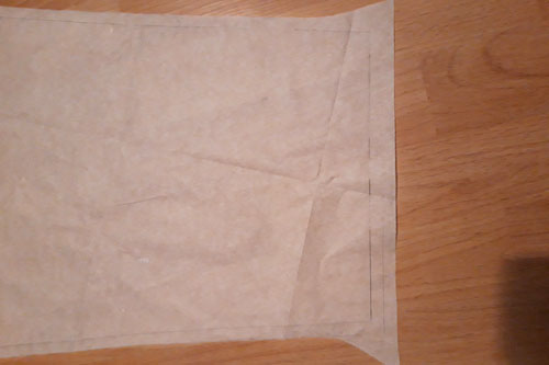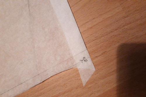 Zeichnet dann die Abnäher für das Rückenteil mit Schneiderkreide auf Stoff ein und setzt die Naht dafür.