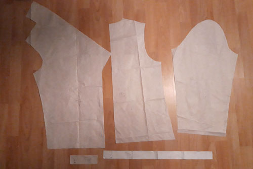Zuerst einmal müsst ihr anhand der angegebenen Maßtabelle eure Größe ermitteln. Dann werden die entsprechenden Schnittteile auf euer Schnittmusterpapier durchgepaust und die Nahtzugabe hinzugefügt, sofern sie noch nicht im Schnitt enthalten ist. Danach könnt ihr die Teile ausschneiden. Beim Ärmelsaum großzügig links und rechts ausschneiden.