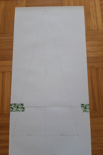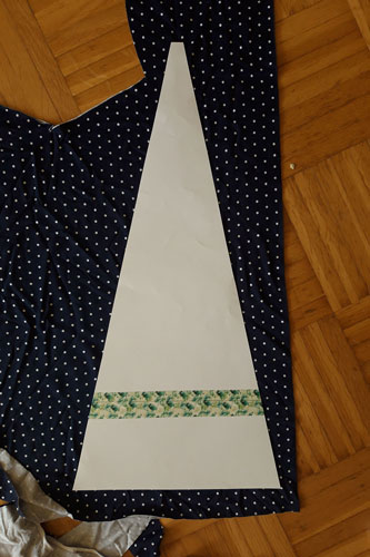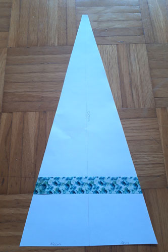 Oben an der Spitze (also nach 50 cm) messe ich ca. 0,75 cm Nahtzugabe zu beiden Seiten ab.