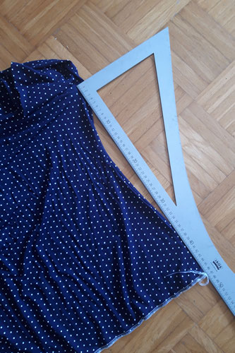 Messt die Seitennaht aus und zwar vom Armlochkreuz, also dem Punkt wo alle Nähte aufeinander treffen, bis zum Saum.