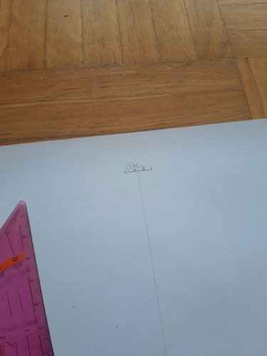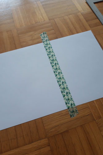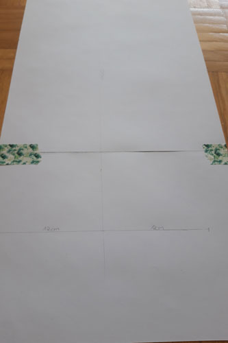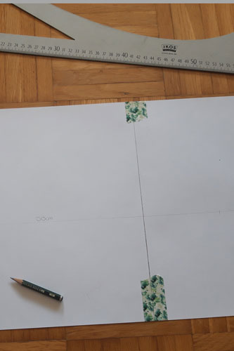 Zeichnet in die Mitte des Papiers eine gerade Linie und messt euer Maß ab (hier 50 cm).