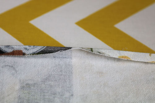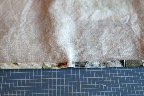 Zuerst müssen alle vier Kanten um 2 cm nach innen eingeschlagen und umgebügelt werden.