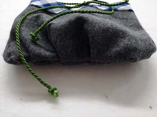 Für die Seitenverstärkung legst du die Kordel (Länge: 19 cm) mittig auf das Schnittteil C und klappst es zu. Jetzt das Ganze schließen.