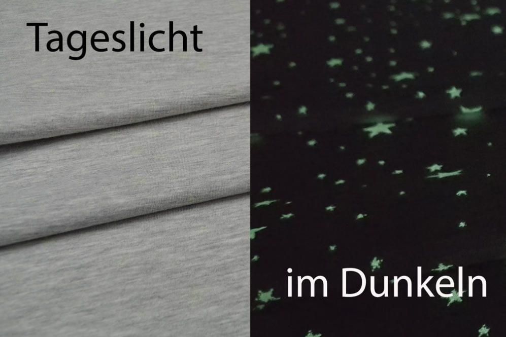 Ein neuer Jersey-Stoff hat es in unseren Shop geschafft - diesmal mit Sternen-Motiv, das nachts leuchtet! Ein wahnsinnig cooler Effekt. Klickt auf das Bild, schaut euch das Video an und überzeugt euch selbst!
