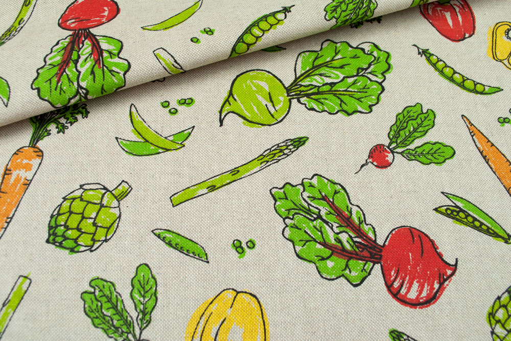 Leckeres Gemüse-Motiv auf rustikal wirkendem Dekostoff in Leinenoptik!