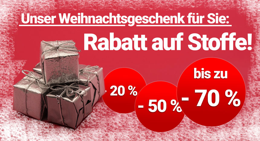 Newsletter - Ihr Weihnachtgeschenk: Rabatt-Aktion - bis zu 70% Rabatt auf Stoffe