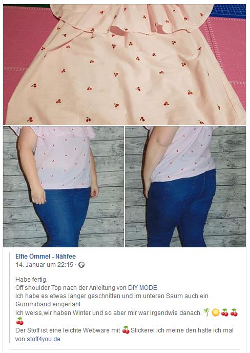 Vielen Dank für das Vernähen von unserem Stoff.