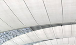 Textile Deckensegel, deren Einsatzzweck vom Schallabsorber über Dekoration und Abdeckung bis zum Sicht- sowie Sonnenschutz reicht, werden horizontal oder vertikal deckenseitig im Raum montiert.