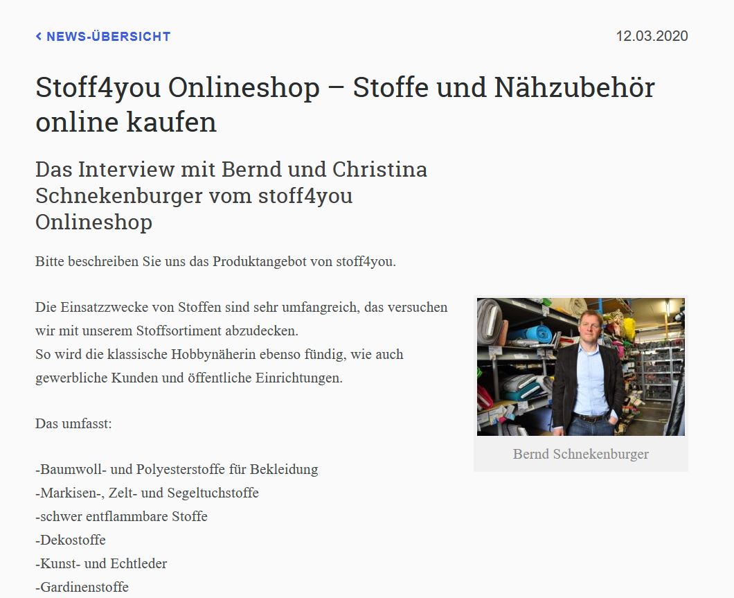 Interview mit den Inhabern von stoff4you, Bernd und Christina Schnekenburger - "ExpertenTesten.de"