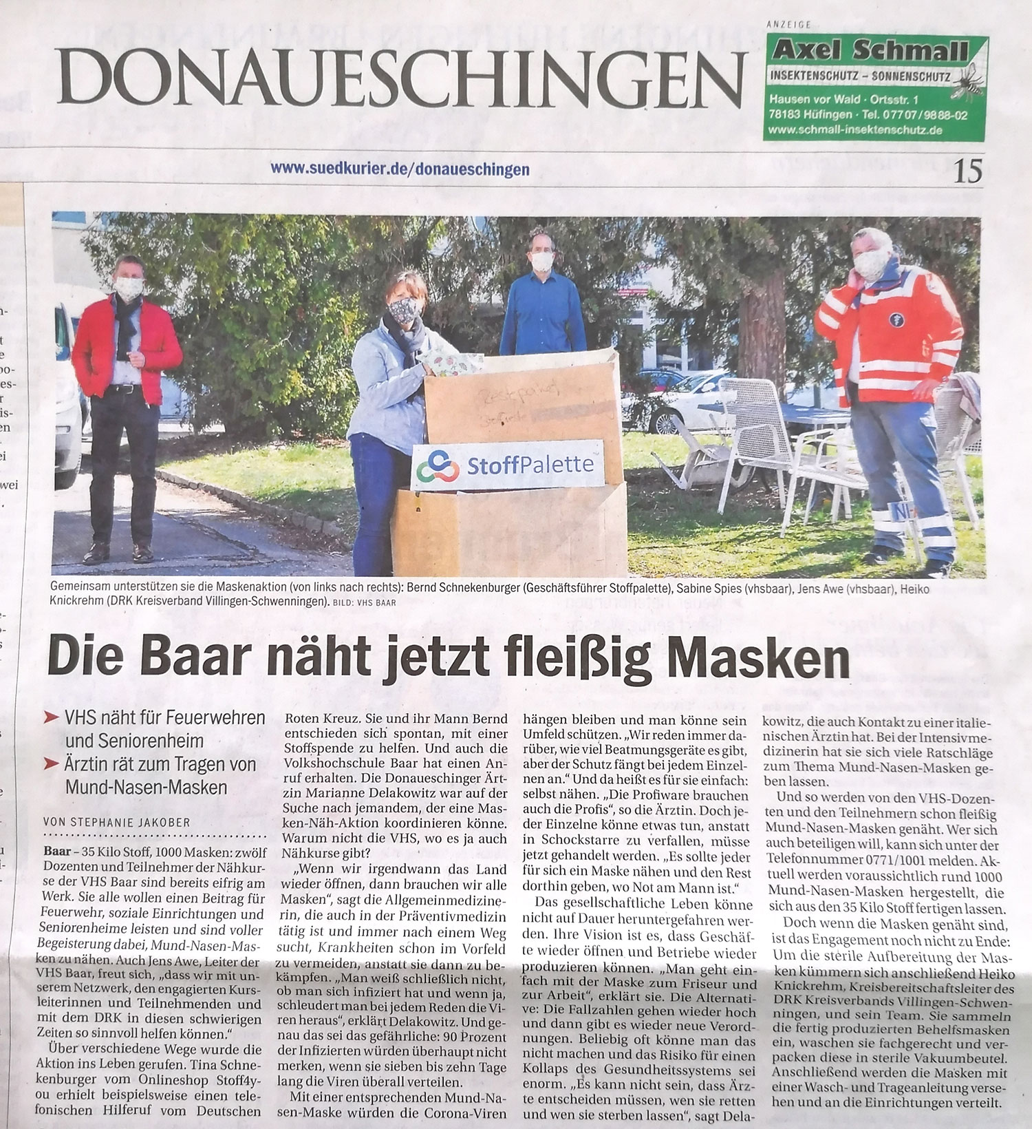 Südkurier - Die Baar näht jetzt fleißig Masken