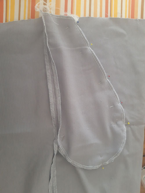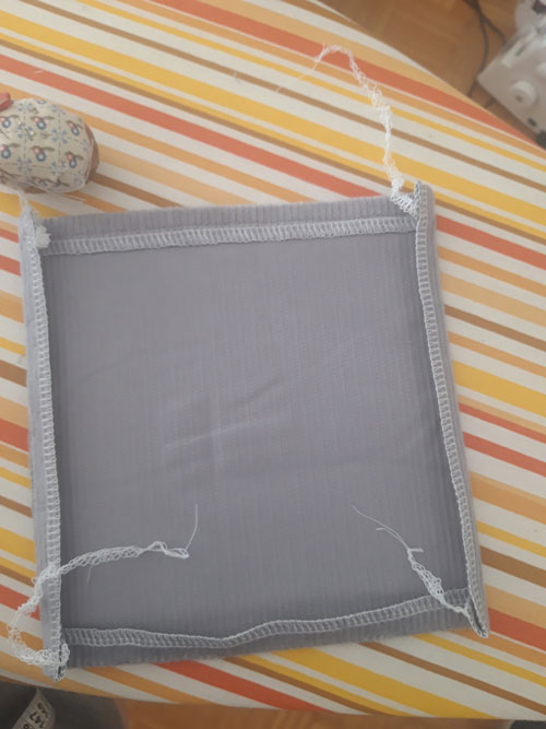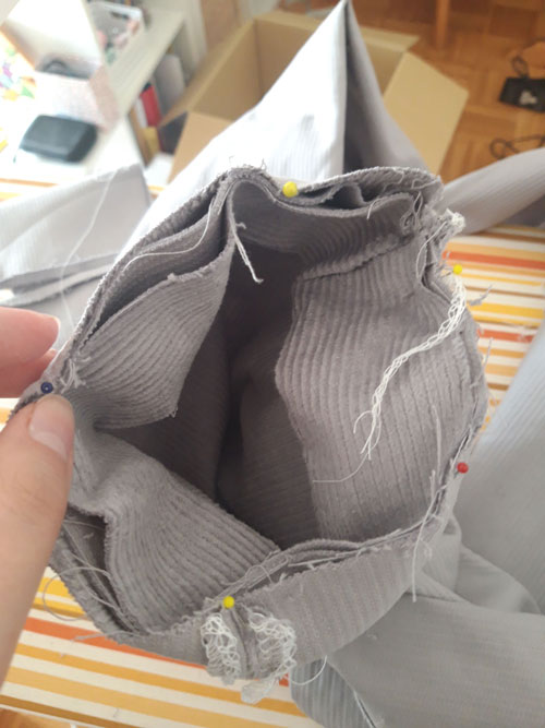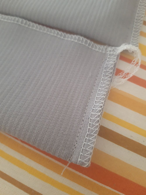 Ich scheide hier an der geschlossenen Seite die Ecken ab, um später nach dem Wenden schöne Ecken zu haben.