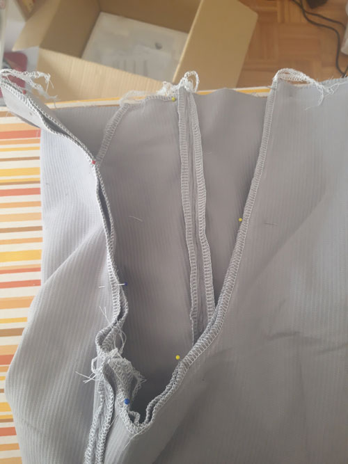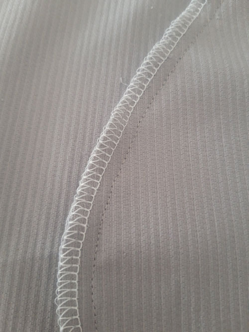 Bevor wir loslegen, versäubere ich die Taschenbeutel, die Seitennaht, Schrittnaht und die Innennaht.