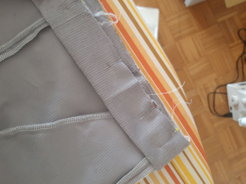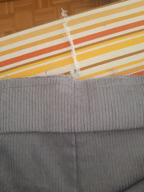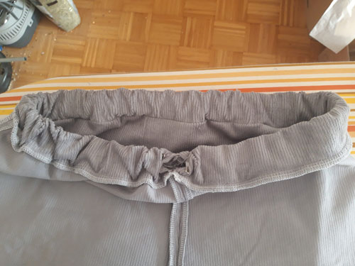 Nähe den Bund nun an die Hose (bei 1 cm) und versäubere das Ganze.